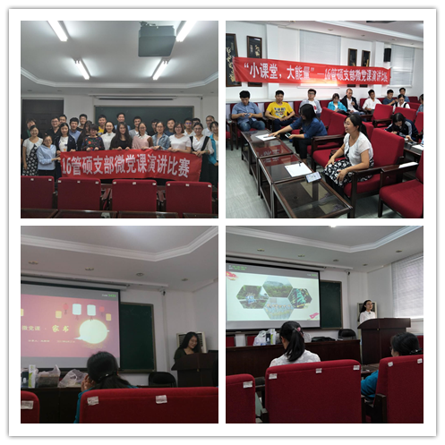 2017年9月27日下午,由万博max体育官网入口党委举办、16管硕支部承办的“小课堂,大能量”微党课演讲比赛在万博max体育官网入口301会议室顺利开展。万博max体育官网入口党委委员郭冬梅老师、学生办公室张路老师、16管硕支部书记王慧老师担任评委。学院党委副书记赵静参加并颁奖。