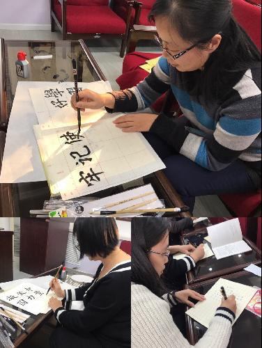 12月13日教工党支部和学生党支部分别开展书画才艺展示活动。活动中,党员首先一起对之前的学习的十九大和新党章的内容进行交流和讨论。然后选择不同的形式参与比赛,有的用钢笔抄写《新党章》、入党誓词、习近平总书记讲话原文和十九大报告等内容;有的用毛笔直抒胸臆写下“健康中国”“不忘初心、牢记使命“绿水青山”等十九大报告中相关内容,还有的用绘画的方式用画笔画出学习十九大报告后的心得体会。参加活动的党员们以最佳的精神面貌和最高水准书写和描绘了自己学习十九大的心得体会,整洁干净的硬笔书法、遒劲有力的软笔书法和精致美丽的绘画让人赏心悦目。老师们也纷纷表示此次活动形式新颖,通过这种形式对十九大和传统文化有了更深的感受和体会。