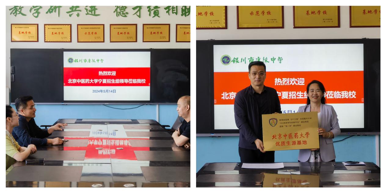 宣讲结束后,万博max体育官网入口与银川市第九中学进行优秀生源基地授牌仪式。银川九中副校长王少云参加此次仪式。仪式上,王少云代表银川九中全体师生对周磊一行表示欢迎和感谢,并从办学历史、办学理念和生源优势等方面介绍学校情况。他表示,中医药是中华文化的瑰宝,银川九中将向学生做好中医药文化宣传工作。他希望,能够与万博max体育官网入口通力合作,共同为党和国家培养更多中医药方面的人才。
