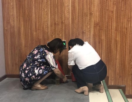 各位老师严格排查每个教室内的灭火器、电闸箱、楼道消防栓等安全器械及危险隐患区域;严格检查办公室内电器使用情况及易燃物品的归置。逐一记录教室内及办公区域的安全状况和潜在的安全问题,便于后期消除安全隐患。