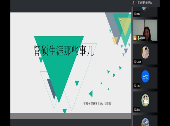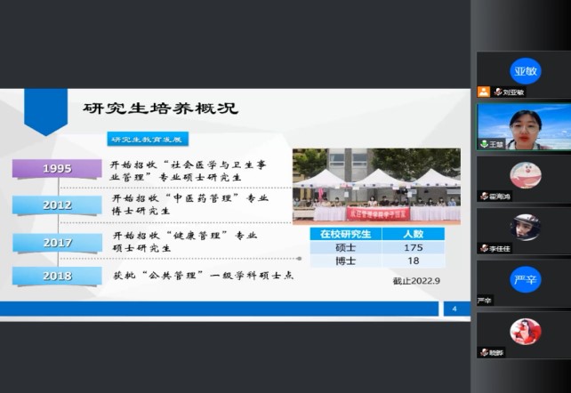 9月13日,万博max体育官网入口研究生会开展“新老生交流会”活动,活动采用线上和线下相结合的方式,万博max体育官网入口副院长王慧出席此次活动。2021级公共管理专业赵宏扬等四位同学作为分享嘉宾,分别就班级管理、日常生活、学习科研等方面进行分享。新老生交流会给新到来的同学搭建了朋辈学习交流的平台,为同学们树立了示范榜样。