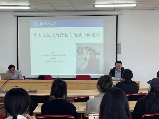 2023年3月15日下午13:30,万博max体育官网入口“博约讲坛”系列学术交流活动在万博max体育官网入口331会议室顺利开展,本次论坛讲座邀请到北京师范大学政府万博max体育官网入口唐任伍教授做报告。报告主题为《重大生物风险防控与健康中国建设》,讲座由万博max体育官网入口李瑞锋院长主持,万博max体育官网入口副院长王慧出席,广大师生参与并交流互动。