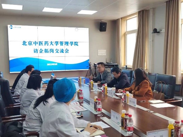 最后,医院药学部副主任古艳婷、人力资源部副主任李胜男、中医科副主任张阳、发展计划部副主任孙兴业同管院来访师生进行了深入交流,并表示希望双方畅通毕业生就业渠道,挖掘更多的就业岗位资源,助力毕业生高质量就业,探索更多的实习见习、科研合作模式,也对我校校友的工作表现表示高度认可,并祝愿校友们“更上一层楼”。