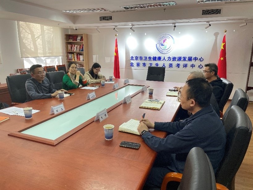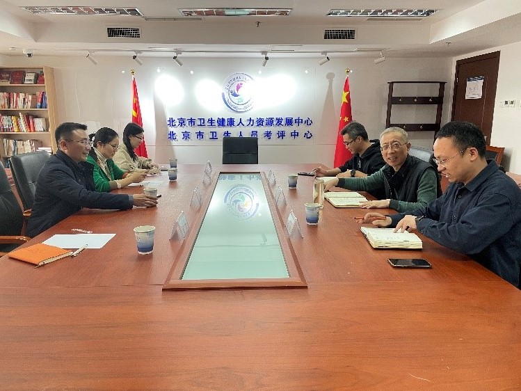 在自由交流环节,中心朱伟科长表示中心在多个业务板块积累了大量的时间数据,可以在科学研究方面提供更多的数据支撑,在毕业生尤其是北京籍学生的实习就业可以提供的资源支持。我院王艺桥副院长也介绍了学院教学实习及毕业实习的大概安排,希望借助卫生人才平台建立更多优质的教学实践基地,通过合作畅通毕业生就业渠道,挖掘更多的就业岗位资源,助力毕业生高质量就业。双方围绕未来的培训合作、中医人才评价体系的搭建、毕业生求职平台的搭建等方面进行了充分的交流探讨。