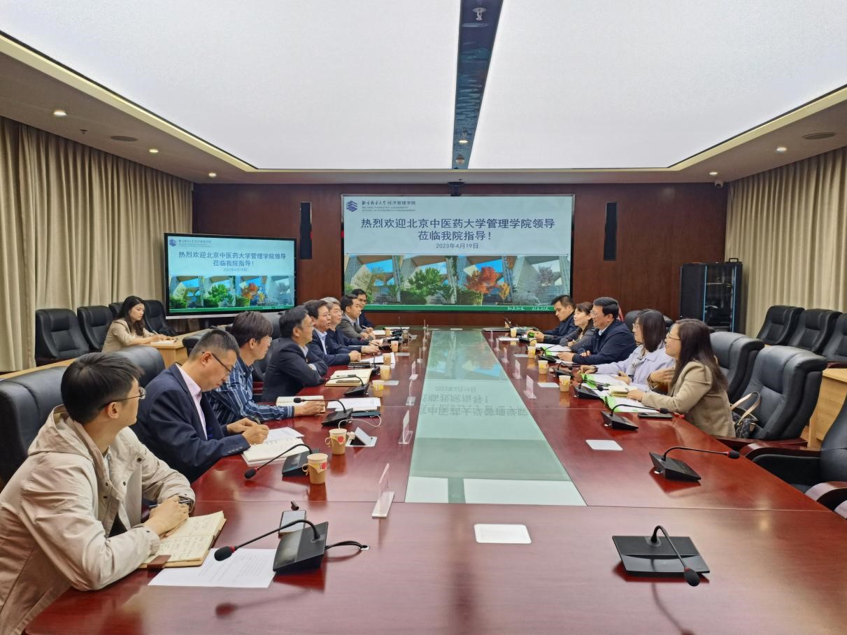 温亚利院长首先代表北京林业大学经济万博max体育官网入口对我院一行的到访表示欢迎,并对学院的人才培养、科研管理、学科建设等方面进行了全方位介绍。随后,双方关于学院建设、治理、组织框架以及日常管理工作等方面开展了热烈的讨论。李瑞锋院长对北京林业大学经济万博max体育官网入口各位领导关于办学经验的介绍表示感谢,并介绍了北中医万博max体育官网入口的基本情况。双方围绕人才培养经验、教学与科研激励措施、人才引进制度等彼此关心的话题进行了交流和研讨,以更进一步理清思路、优化路径、总结经验、破解难题。